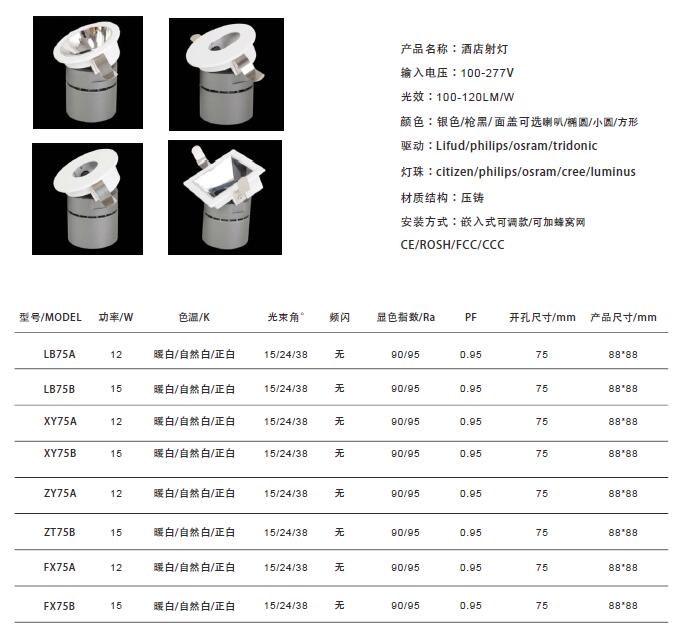 光源品牌:CREE/欧司朗/飞利浦/西铁城
